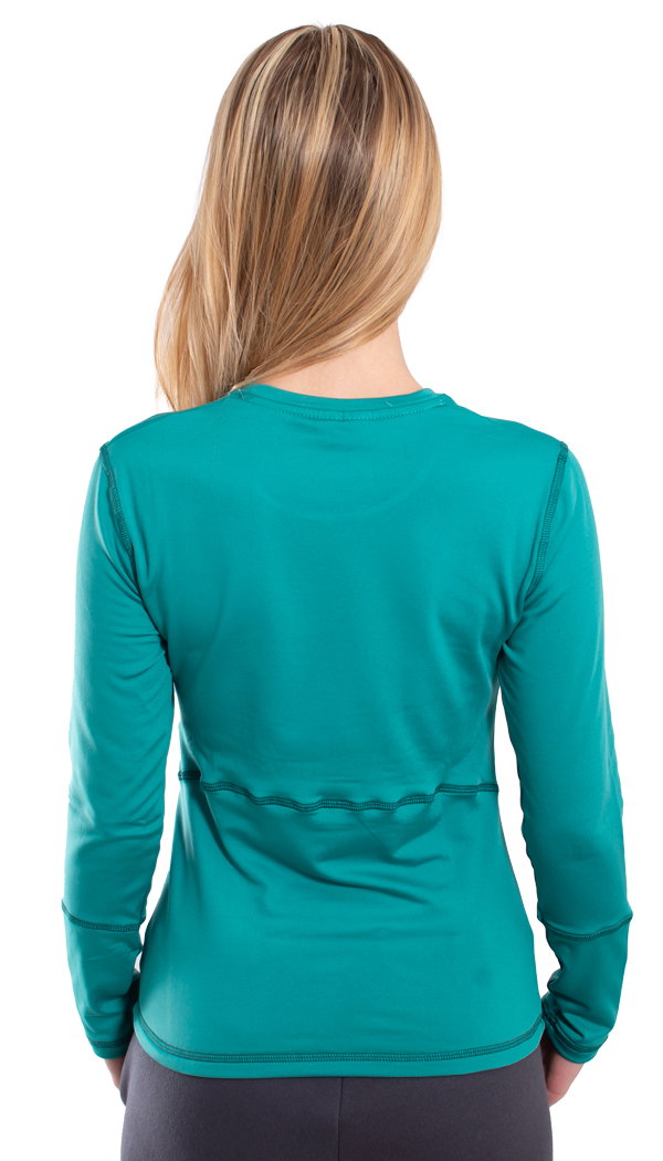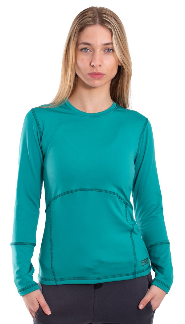 Confeccionada con microfibra térmica liviana, la remera Melia se presenta como una opción ideal para los días de invierno. En el delantero y espalda, corte bajo busto curvo que estiliza la figura. Con costuras pisadas con 2 agujas a tono.