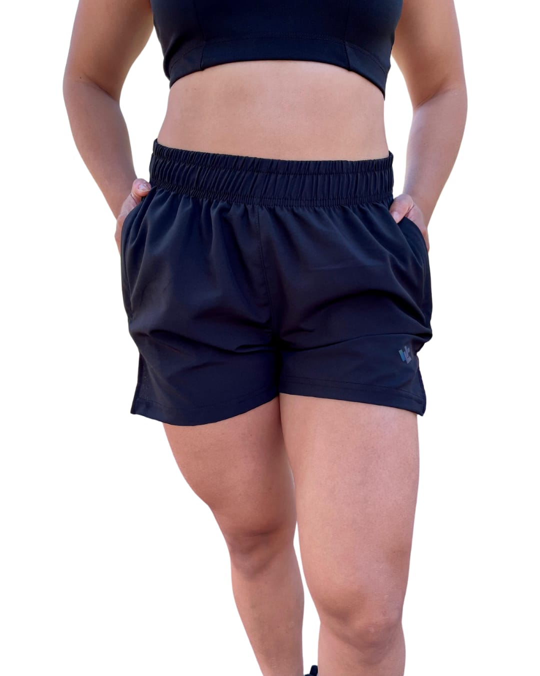 Short confeccionado en microfibra, con cierres laterales, vivos color naranja.
